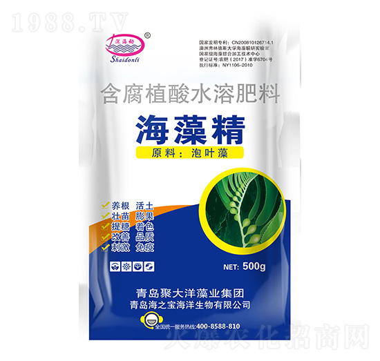 采用澳洲弗林德斯大學(xué)與聚大洋集團(tuán)海藻聯(lián)研實(shí)驗(yàn)室的新一代海藻提取技術(shù)。以進(jìn)口的冷海野生泡葉藻為主要原料,生物酶解精制而成的新產(chǎn)品。是天然植物源的作物生長(zhǎng)刺激劑,更高效。產(chǎn)品富含海藻酸26%(咔唑法)、海藻多糖10%、海藻有機(jī)質(zhì)45%、有機(jī)鉀15%、褐藻寡糖AOS、氨基酸、小分子肽、幾十種微量海洋礦物質(zhì)、甘露醇、酚類等成分。分子量小,易吸收,平衡作物生長(zhǎng),增加作物內(nèi)源活性物的濃度是農(nóng)作物高產(chǎn)、提質(zhì)的好幫手。