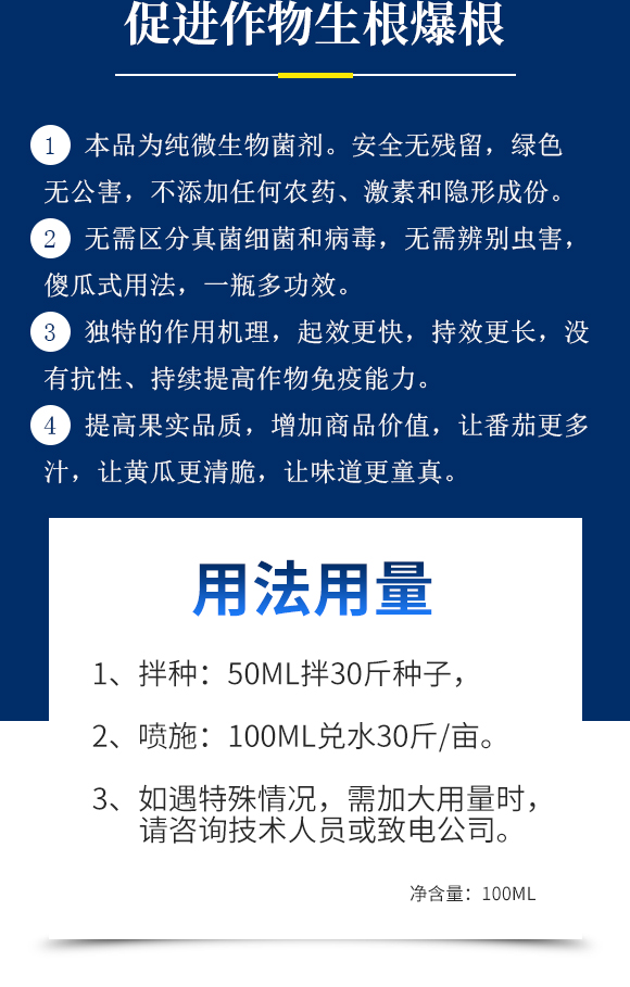 1、本品為純微生物菌劑。,綠色無公害,不添加任何農(nóng)藥、激素和隱形成份。