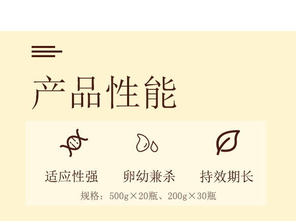 ◆殺螨譜廣、適應(yīng)性強:對紅蜘蛛、黃蜘蛛、銹譬虱、茶黃螨、朱砂葉螨和二玫E葉螨等均有很好防效。