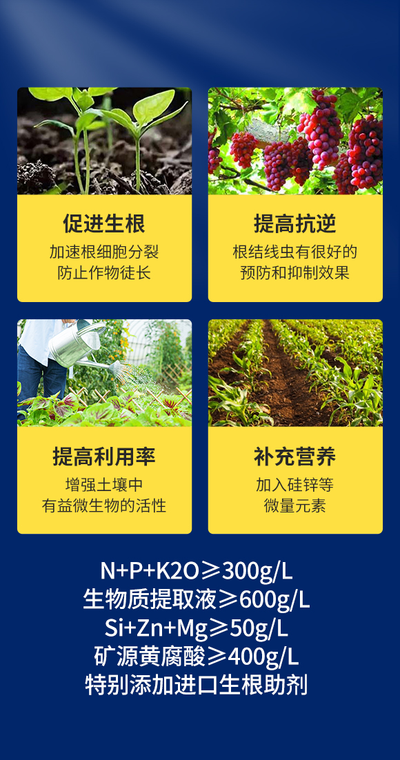 3,增強(qiáng)土壤中有益微生物的活性,提高肥料利用率,促根壯苗。