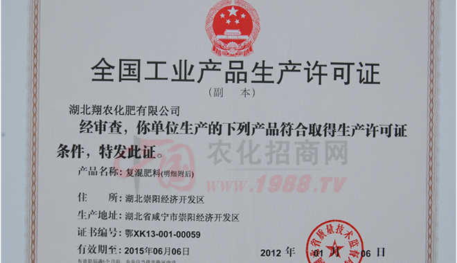 公司始建于1999年6月,為民營(yíng)股份制企業(yè)。主要生產(chǎn)“翔農(nóng)”、“新生”、“崇豐”牌系列復(fù)合肥料。2006年3月,已取得國(guó)家頒發(fā)的高濃度《全國(guó)工業(yè)產(chǎn)品生產(chǎn)許可證》;同年10月,企業(yè)已通過(guò)GB/T19001-2008/ISO9001:2008質(zhì)量管理體系認(rèn)證;2007年9月,被湖北省農(nóng)業(yè)廳認(rèn)定為《湖北省測(cè)土配方肥料定點(diǎn)加工企業(yè)》;2009年5月,被咸寧市政府授予“咸寧市農(nóng)業(yè)產(chǎn)業(yè)化市級(jí)重點(diǎn)龍頭企業(yè)”的光榮稱號(hào);同年11月,被咸寧市質(zhì)量興市領(lǐng)導(dǎo)小組辦公室授予“質(zhì)量監(jiān)督檢驗(yàn)三年合格單位”。2011年12月,公司產(chǎn)品被湖北省實(shí)施質(zhì)量興省戰(zhàn)略工作領(lǐng)導(dǎo)小組授予“湖北產(chǎn)品”。2012年9月,“翔農(nóng)”商標(biāo)榮獲湖北省著名商標(biāo)。