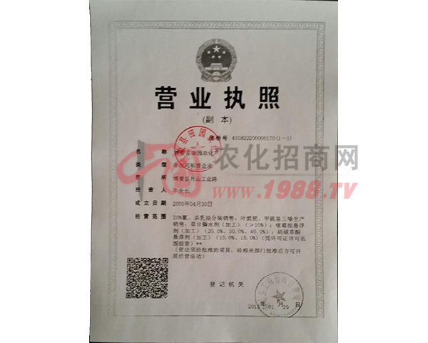 河南省博愛縣田園農(nóng)化廠成立于1999年3月,是農(nóng)業(yè)部農(nóng)藥定點生產(chǎn)企業(yè),坐落于博愛縣月山鎮(zhèn)工業(yè)路。