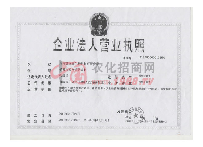 河南德立泰生物科技有限公司成立于2010年,生產基地占地面積68畝,總投資1000萬元。前身為德立泰生物制藥廠,是農業(yè)部、河南發(fā)改委定點的農藥生產企業(yè),全國專業(yè)的控旺、座果、膨果調節(jié)劑,河南省早專業(yè)的藥性調理劑研發(fā)生產基地。公司依托中國農業(yè)大學、河南農業(yè)大學、南京土壤研究所等單位強大的科技研發(fā)力量做后盾,背靠河南農業(yè)大學雄厚的師資力量,成熟的科研基地,杰出的復合型人才。同時與國內眾多農業(yè)院校和科研機構建立了多方位、深體系的技術合作關系。