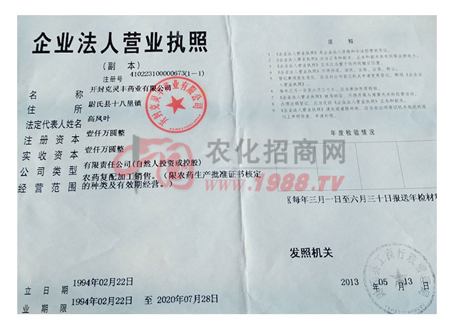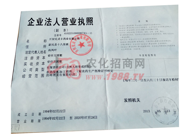 開封克靈豐藥業(yè)有限公司,是國(guó)家農(nóng)業(yè)部定點(diǎn)的農(nóng)藥生產(chǎn)企業(yè)。始建于1987年,1992年與澳大利亞悉尼利華集團(tuán)合資創(chuàng)建了中外合資開封克靈豐藥業(yè)有限公司,該公司的創(chuàng)立實(shí)現(xiàn)了開封市中外合資企業(yè)零的突破。2002年度變更為獨(dú)資企業(yè),獨(dú)資后的開封克靈豐藥業(yè)有限公司,吸取了合資后的優(yōu)點(diǎn),克服了以前不適應(yīng)市場(chǎng)的短處,獨(dú)資后更以其科學(xué)的管理機(jī)制,雄厚的資金優(yōu)勢(shì),服務(wù)民眾、造福社會(huì),F(xiàn)在公司占地面積3萬(wàn)余平方米,建筑面積1.6萬(wàn)余平米。