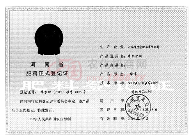 河南蓮味寶肥業(yè)有限公司(原中日合資蓮花味之素有限公司)是全國大用小麥發(fā)酵生產(chǎn)有機肥的基地.公司創(chuàng)建于2002年,是集科研、生產(chǎn)、經(jīng)營、物流為一體的大型股份制企業(yè)。年設(shè)計生產(chǎn)能力50萬噸有機肥、沖施肥、生物肥及葉面肥、農(nóng)藥等,河南蓮味寶肥業(yè)有限公司充分利用生產(chǎn)味精的副產(chǎn)品進行資源轉(zhuǎn)換,加大科技含量提高產(chǎn)品的品質(zhì),現(xiàn)已開發(fā)幾十個系列產(chǎn)品。公司生產(chǎn)的“蓮味寶”“邁恩斯”“福得索”“貴人香”系列產(chǎn)品富含農(nóng)作物所需的氮、磷、鉀、硫、鈣、鎂元素,以及鐵、錳、硼、鋅等微量元素,還含有有機質(zhì)、氨基酸、腐殖酸。生產(chǎn)的黃腐酸鉀生物菌肥還含有黃腐酸、生物菌等有效成份,對糧食、棉花、水果及其它經(jīng)濟作物的效果特別明顯。