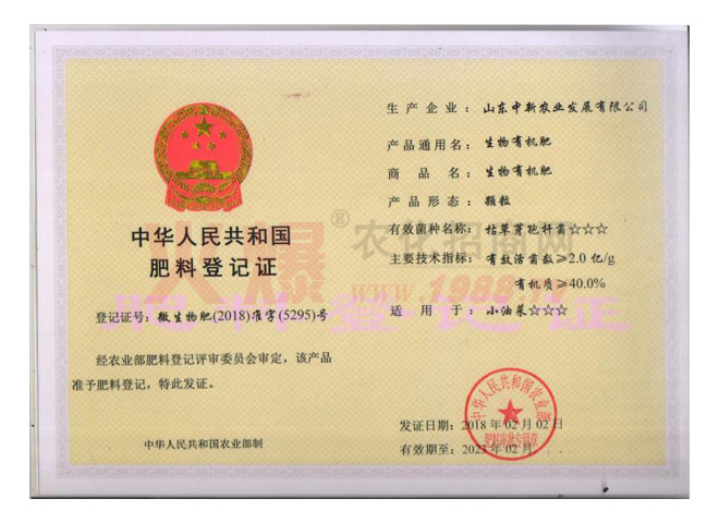 公司先后榮獲“綠色肥料生產(chǎn)基地骨干企業(yè)”、“全國(guó)守合同重信用企業(yè)”、“第十五屆山東省消費(fèi)者滿意單位”、“臨沂市市長(zhǎng)質(zhì)量獎(jiǎng)”等榮譽(yù)稱號(hào)。“喚醒”系列微生物菌肥被評(píng)為“2017年度中國(guó)十佳有機(jī)肥”。