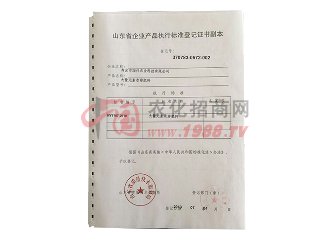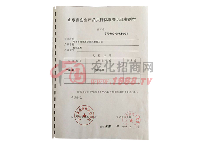 證書(shū)名稱:菜農(nóng)信賴的十大肥料 發(fā)證機(jī)構(gòu):壽光市農(nóng)業(yè)局