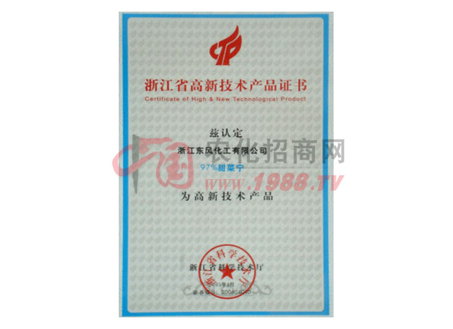 浙江東風化工有限公司,創(chuàng)辦于1992年,是國家定點農藥企業(yè),座落在溫州機場附近,公司占地面積50000多平方米,員工200多人,固定資產6600萬元。經(jīng)過十幾年的艱苦創(chuàng)業(yè),現(xiàn)已逐步發(fā)展成為集農藥研制開發(fā)、生產、銷售和服務為一體化的現(xiàn)代化農藥化工基地。公司曾連膺“浙江省高新技術企業(yè)”、“溫州市商標”、“龍灣區(qū)百強企業(yè)”、“AAA級資信企業(yè)”、“重合同守信用企業(yè)”,擁有“外貿自營進出口權”、通過ISO9001:2000國際質量體系和國家二級質檢認證,并擁有一個“農藥科技研發(fā)中心”奠定了企業(yè)發(fā)展的堅實基礎。