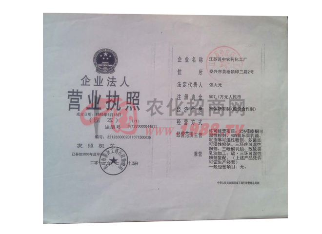 我廠系江蘇省農(nóng)藥生產(chǎn)定點(diǎn)廠家,國(guó)家中型企業(yè)。擁有外貿(mào)自營(yíng)進(jìn)出口權(quán),工廠占地面積4萬(wàn)平方米,建筑面積2.8萬(wàn)平方米。擁有固定資產(chǎn)2500萬(wàn)元,具有農(nóng)藥原藥生產(chǎn),加工制造能力及化工產(chǎn)品生產(chǎn)條件,水、電、氣公共設(shè)施配套齊全,檢測(cè)手段完備,擁有氣相色譜議,液相色譜儀等檢測(cè)設(shè)備,工廠現(xiàn)在以生產(chǎn)農(nóng)藥殺菌劑、殺蟲劑、除草劑三大系列產(chǎn)品為主,年產(chǎn)值5000萬(wàn)元以上,產(chǎn)品銷往全國(guó)各地。技術(shù)合作緊密層為水稻研究所,揚(yáng)州大學(xué)農(nóng)學(xué)院,熱忱歡迎有識(shí)志士前來(lái)洽談合作和加工生產(chǎn)。