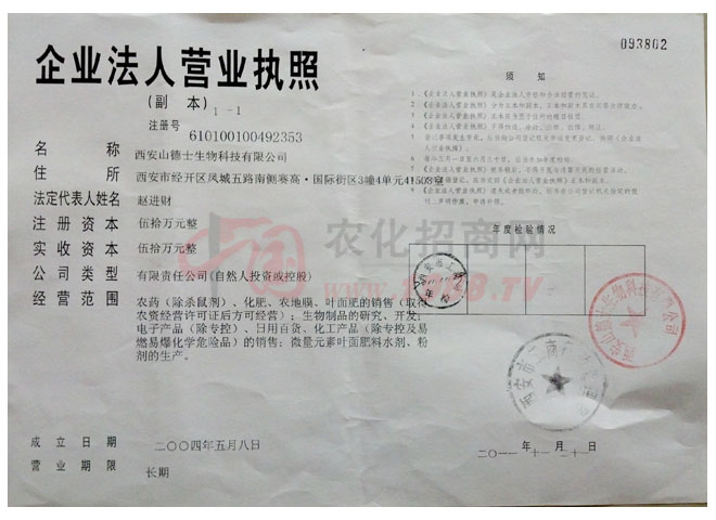 西安山德士生物科技有限公司位于西安經濟技術開發(fā)區(qū)大興東路46號, 是以生物制品、化肥、葉面肥的開發(fā)、銷售、生產為一體的綜合性企業(yè)。公司擁有總資產1300萬元,年銷售額8000萬元。占地面積6400平方米,職工人數(shù)62人,其中各類技術人員17人。技術力量雄厚,擁有肥料、葉面肥、生物酶制品,四條國內先進的現(xiàn)代化生產線,生產工藝先進,并通過省級三級質量體系認證,檢驗設備先進,質檢部配有高效液相色譜儀、高效氣相色譜儀、721分光度計、原子分析儀等先進檢測設備,質檢人員5名,可、快速進行產品質量檢測和控制分析。