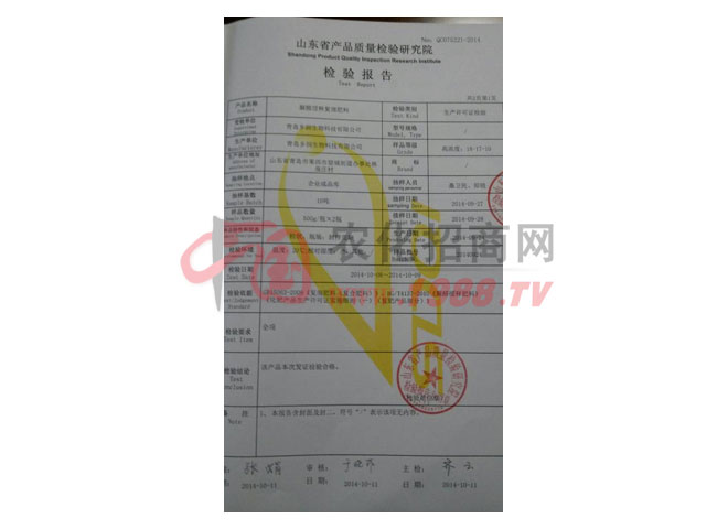 證書名稱:檢驗(yàn)報(bào)告 發(fā)證機(jī)構(gòu):山東省產(chǎn)品質(zhì)量檢驗(yàn)研究院