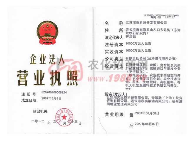 公司先后榮獲“國家行業(yè)一百強”、“全國農資企業(yè)”等光榮稱號,被江蘇省政府授予“文明單位”、“重合同守信用企業(yè)”、“環(huán)保先進企業(yè)”、“A級納稅信用等級”等榮譽稱號。公司視產品質量為企業(yè)生命,五大產品于2011年通過ISO9001:2008質量體系認證。