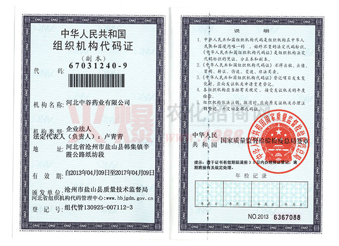 證書名稱:組織機(jī)構(gòu)代碼 發(fā)證機(jī)構(gòu):國家質(zhì)量監(jiān)督檢查檢疫總局