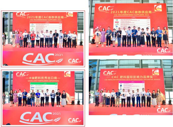 第九屆CAC獎頒獎典禮于6月22日下午2:00在上海新國際博覽中心3號入口廳隆重舉辦。頒獎典禮上隆重揭曉了肥料優(yōu)質(zhì)出口商、CAC肥料國際影響力品牌獎、2020海外市場拓展獎、2021年度CAC推薦供應(yīng)商的獲獎名單,46家肥料企業(yè)喜獲獎杯。